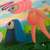 In this painting, it is the return to the sources which is depicted in a surrealist way. The character walking towards the left of the painting, the return to the sources is here indicated as a return to the past. The character leaves the technology symbolized by the flying saucer to return to a simpler universe.