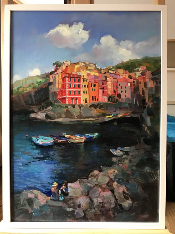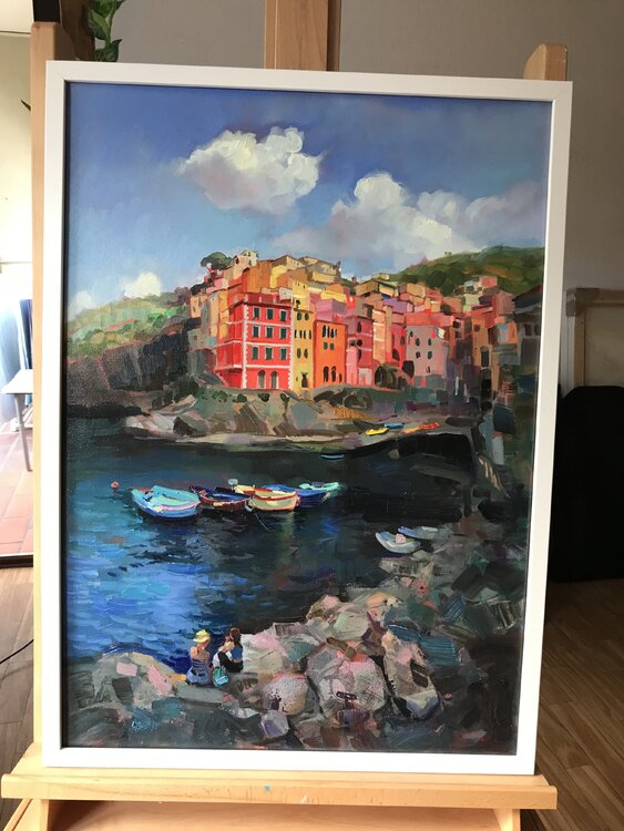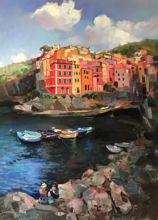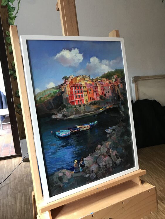 Italian Riviera landscape in a seaside town - Riomaggiore and colorful houses.