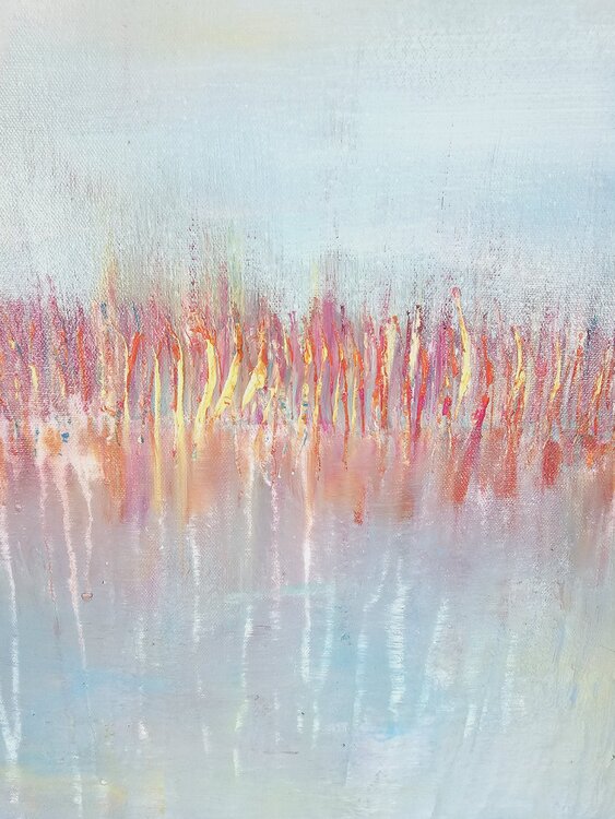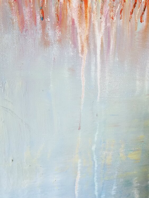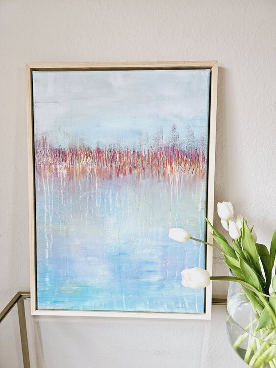 In this abstract scene, colorful lights dynamically reflect on the water. The vibrant colors and movement create an atmosphere of joy and optimism. The image invites the viewer to linger and enjoy the harmonious beauty of the scene. The colorful light reflections on the water give the painting a lively and energetic appearance that is positive and inspiring. A work of art that spreads a good mood and invites you to dream.