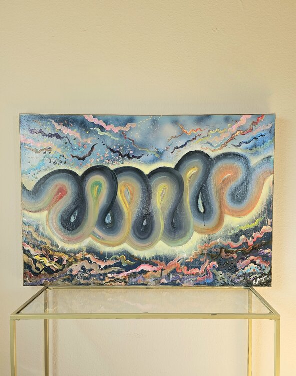 "Finally Confetti" is an abstract picture on canvas that immediately catches the eye with its bright and colorful elements. It is slightly reminiscent of street graffiti and conveys a lively and dynamic atmosphere. The different colors and shapes in the picture create a happy atmosphere and leave room for interpretation. It is a work of art that radiates joy and energy.