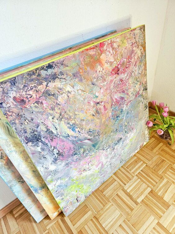 The abstract image entitled "Space" presents a fascinating universe characterized by alien galaxies and star storms. Dark elements give the image a mysterious atmosphere, while accents in bright neon yellow radiate dynamism and energy. The combination of dark and bright colors creates a strong contrast and gives the image a certain depth and tension. It's like diving into the vastness of space and discovering the beauty and mysteries of the universe.