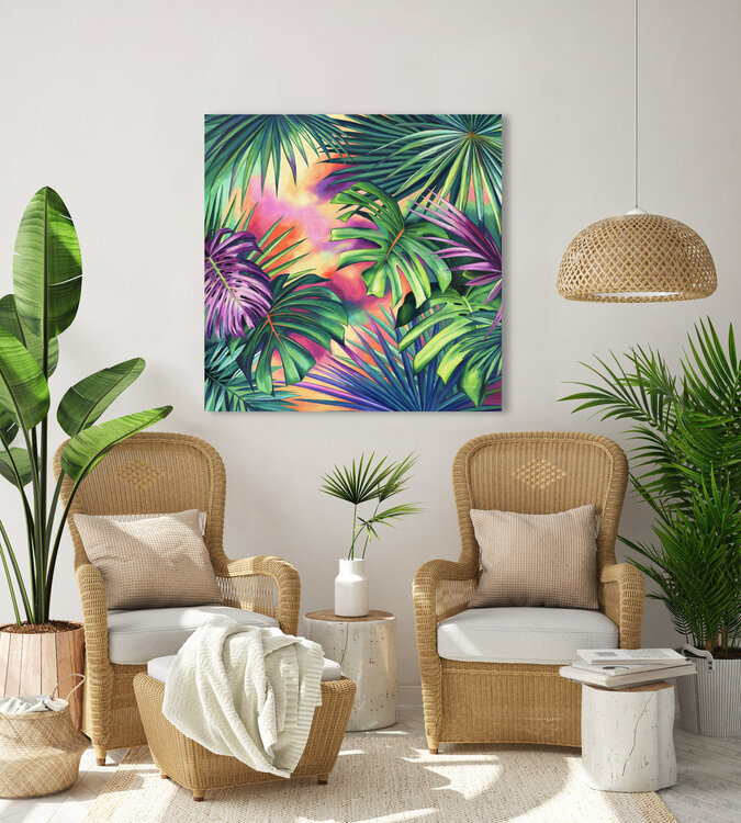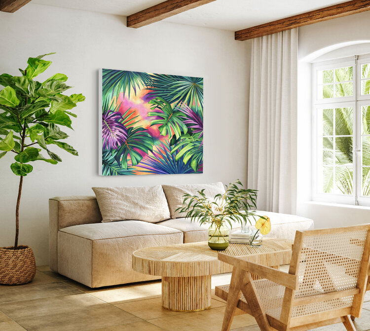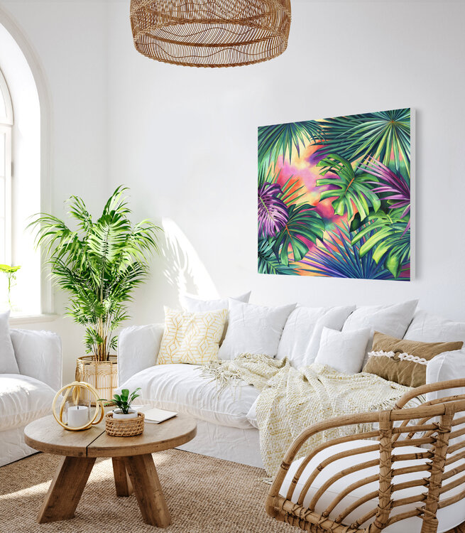 This colorful tropical plants painting will bring the perfect joyful touch that needs a boho wall.