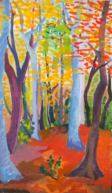 In front of the innumerable details, in a dense forest, the painter abandons himself unable to capture the details and lets the way spontaneously arise to access so much harmony. The hand follows the flow of movements and the colors are combined in tonality, generating a symphony that is pleasant to hear.