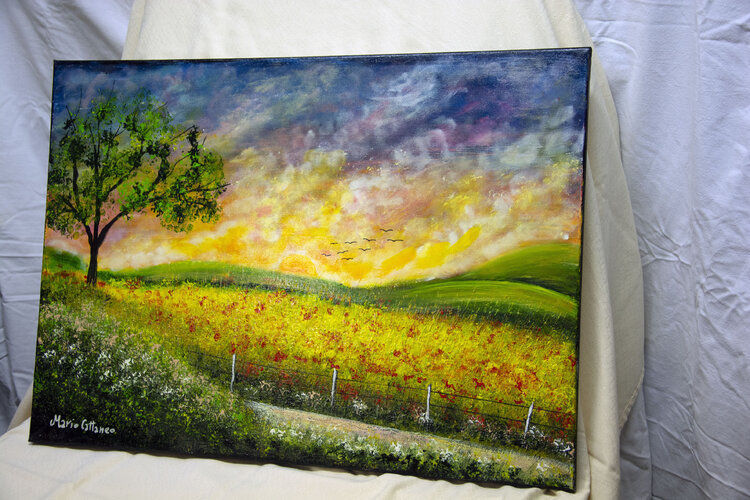 I, who live in the city, when I walk along a country road I try to pick up the colors to bring them into some canvas. Usually I do not carry them faithfully but according to my own thoughts and style, or more simply I adapt to the tubes of paint I have at home. Then just combine the yellow-ocher color of the wheat, the red dots of the poppies and the green of the foliage and that's it.