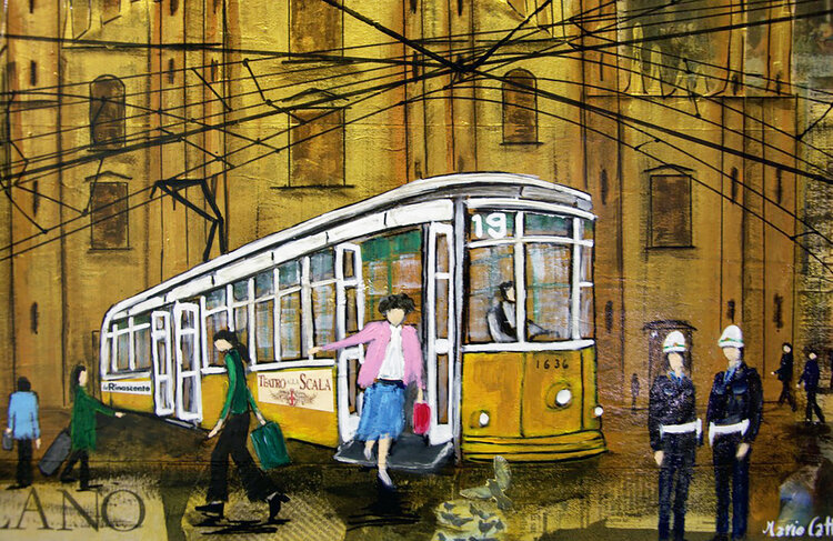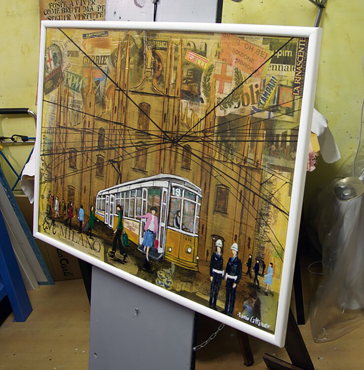 Milano vintage (Mixed technique acrylic and collage 50x70)