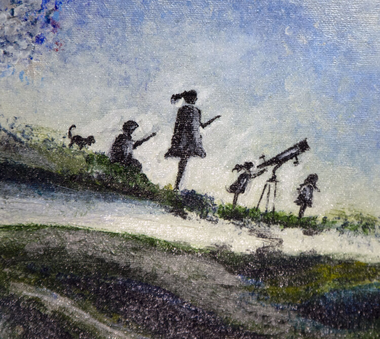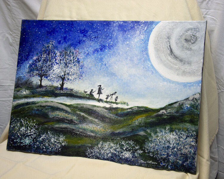 They had climbed the hill to observe that splendid moon and the stars of the galaxy. I saw them positioning their telescope and taking turns observing the starry sky. The father was thinking about the future of the two little sisters: let's hope it will be better and maybe a little more female ...