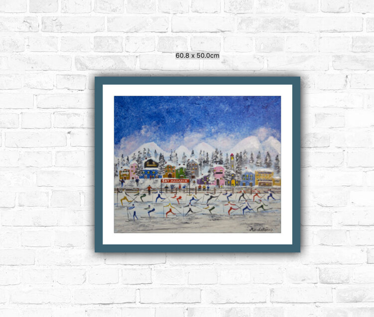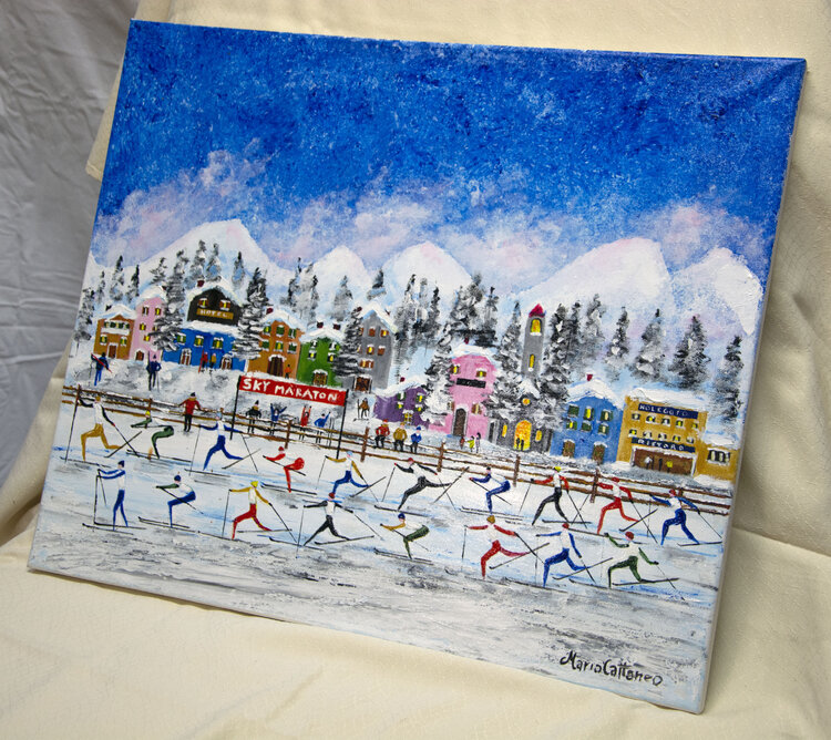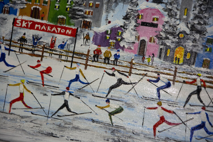 Well yes, in the decade that goes from the beginning of the 80s to the beginning of the 90s I was also one of the group, a cross-country skiing athlete. In the painting I am the one there, the blue one, the last one at the bottom ... here, at the start, I was at the bottom
