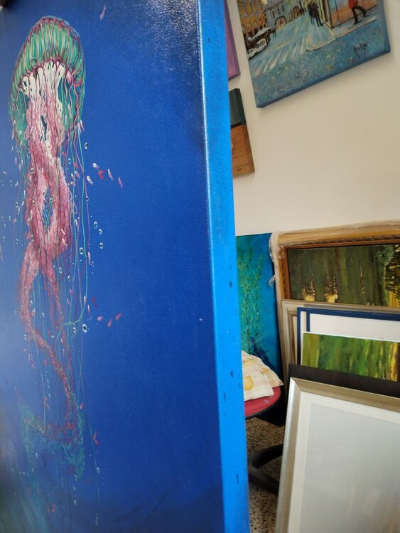 Work performed in acrylic on 3.5 cm thick gallery canvas, also painted on the edge. Important1