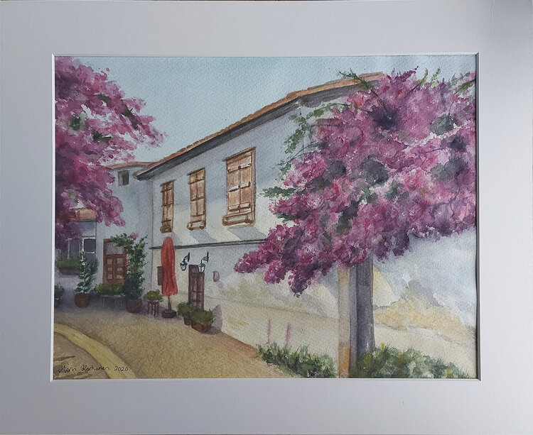 She loves to travel especially in the Mediterranean countries in Europe. During the long and dark winter season in Finland, she often dreams of the sun and light. Such paintings give hope and are nice to paint. They remind her of summer.