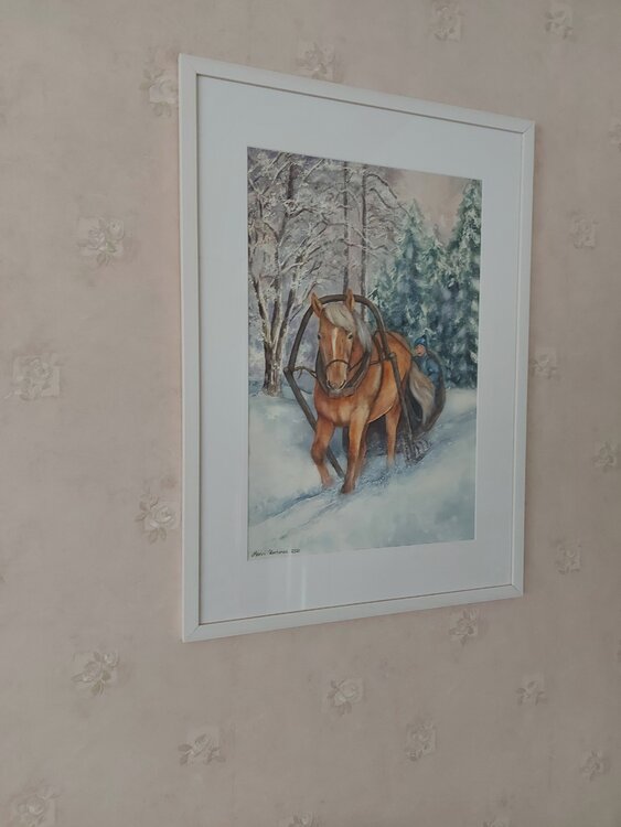 #sleighride, #horseride, #snowyscene, #snowyforest, #traditionalpainting, #finnhorse, #winterlandscape, #snowylandscape, #runninghorse