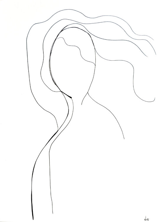 A woman with her hair blowing in the wind, she stands like the Madonna protecting sailors at sea.