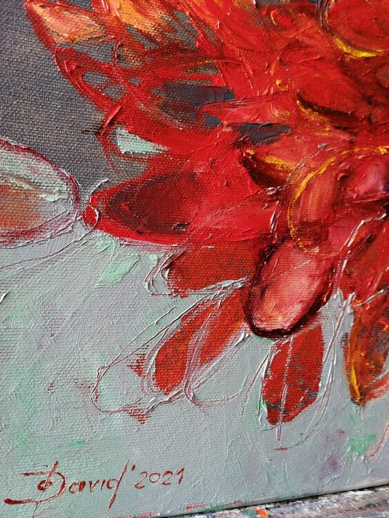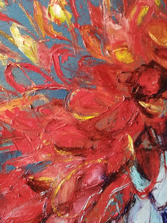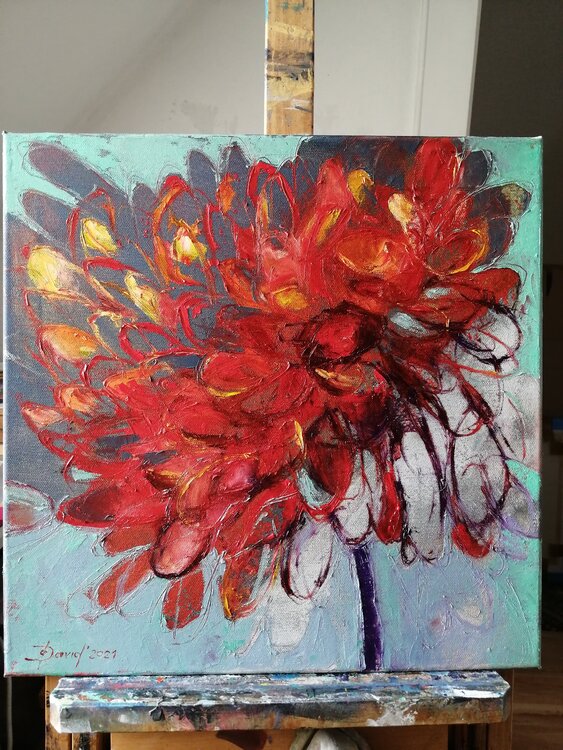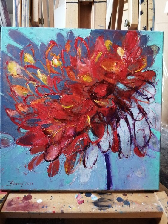 Oil on canvas 40x40 cm, very decorative, pasty layer of paint. The canvas is stretched on a wooden frame and can be hung immediately.