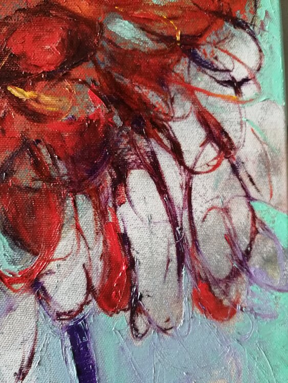 7. Abstraktes Blumen Gemälde rot hellgrün