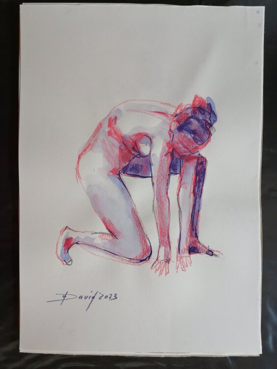 Female nude drawing study on paper 50x35cm. Kneeling woman sport act. Watercolor and pastel pencils. erotic art The drawing will be shipped rolled and will require a picture frame for hanging.