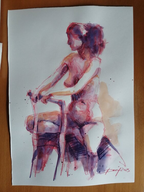Female nude drawing study on paper 50x35cm. sitting woman. Watercolor and pastel pencils. erotic art The drawing will be shipped rolled and will require a picture frame for hanging.