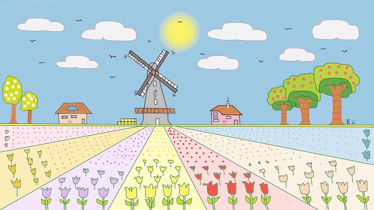 Colored flower Fields drawn withe the mouth mouse (Canvas size 20 x 30 cm )