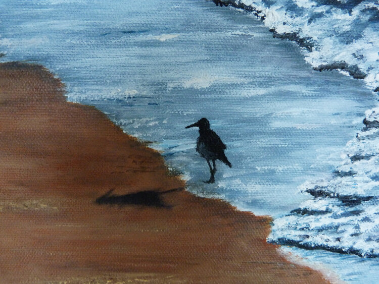 Why not take a stroll on the beach with this little bird. This painting is just for fun, relax and enjoy an afternoon at the beach. The canvas is a bit deeper than most, so even though this is a small painting it will be noticeable on your wall. The edges are fully painted so there is no need to frame it.