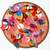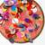 In this series I begin to bring surface in to three dimensions, making a link with my installation work and automatic drawings, aswell as bringing a new format to the wall. In 'Vibrant, my automatic drawing process takes place on fabric, interlocking colourful circular papers, have elements and motifs from many of my other works. Elements are attacheded with stitch on to a linen/silk fabric surface I found many years ago at a fabulous recycling1