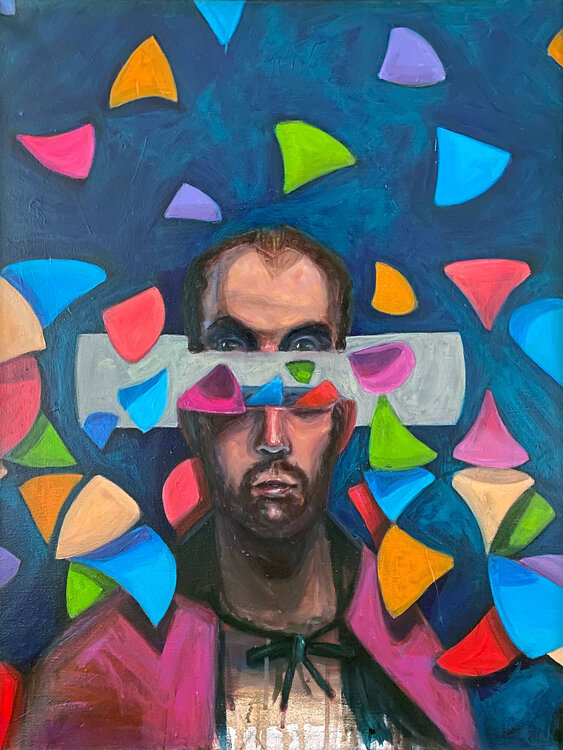 « My art blends abstract and figurative forms, using color to convey a narrative of human radiance and fantasy. »