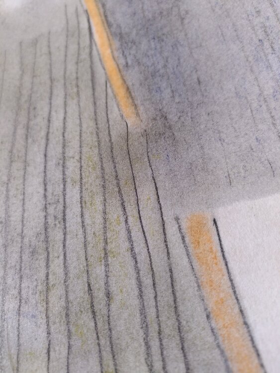 a kind of mountain range resting on an orange framework; the artist relies here on his past as an architect, passionate about metal structures protected against rust thanks to minium orange. the vertical folds recall drapes or the texture of mountains, but also quarries.