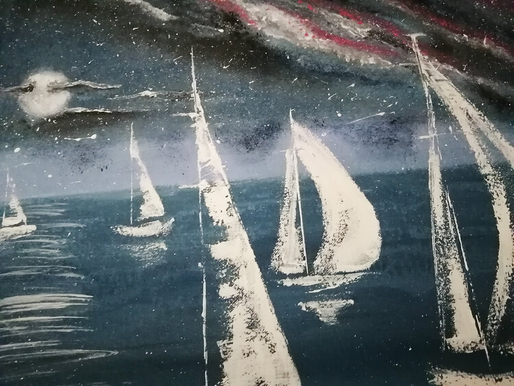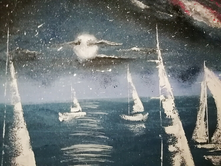 🇪🇸 Esta vez la inspiración ha venido de conversaciones con mí hijo. Otro apasionado del mar y la naturaleza y ese deseo de navegar bajo las estrellas a la luz de la luna llena
