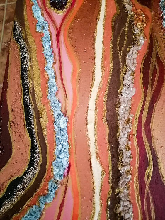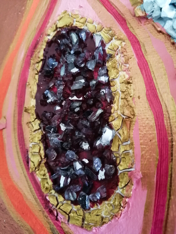Sd dice que esta puedra tiene una gran conexión con la tierra y trae energia y vitalidad. Y es lo que se siente al miraf esta pintura, fuertes vibraciones positivas.