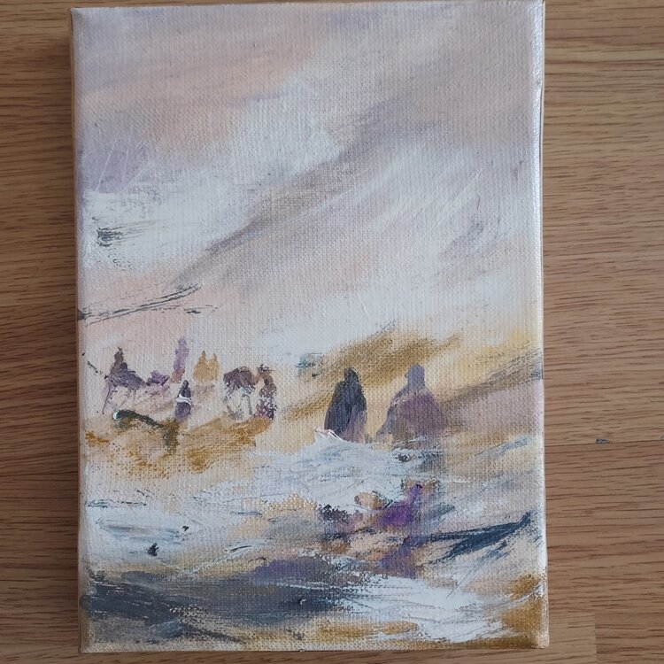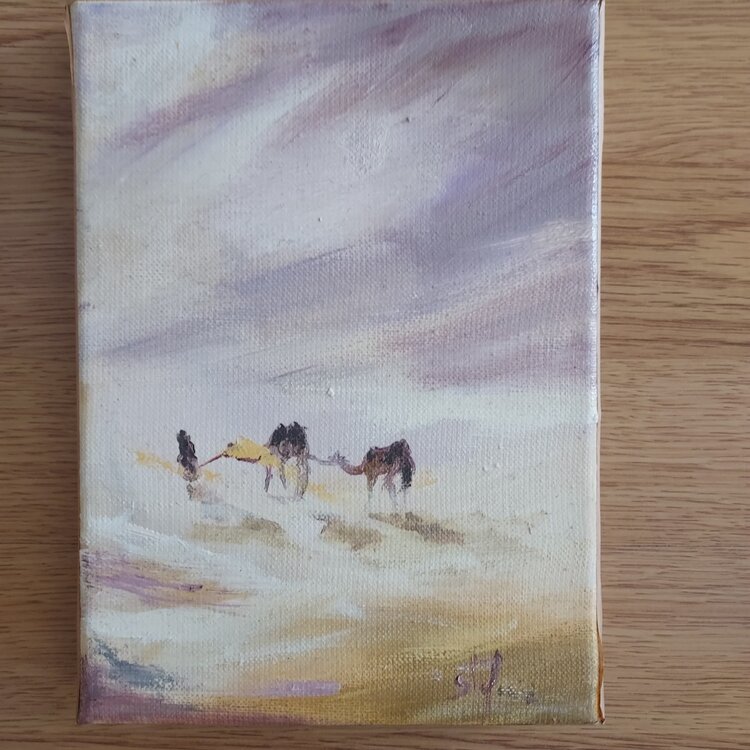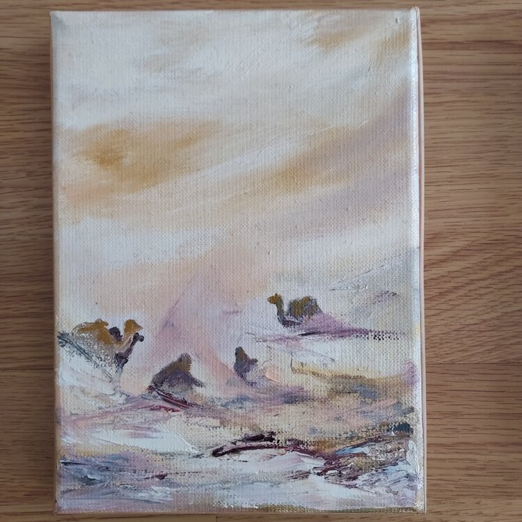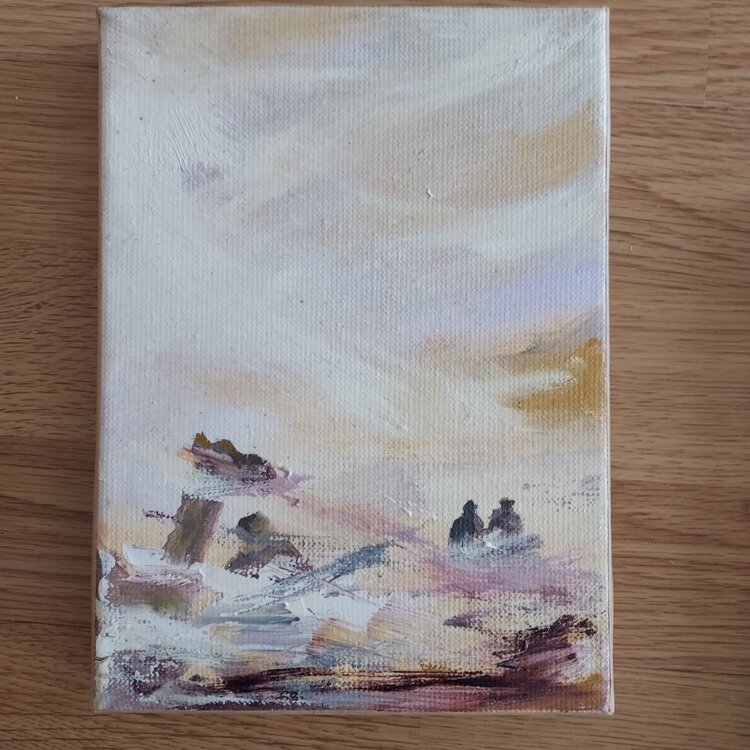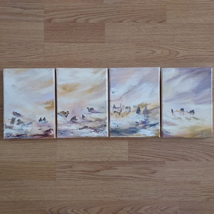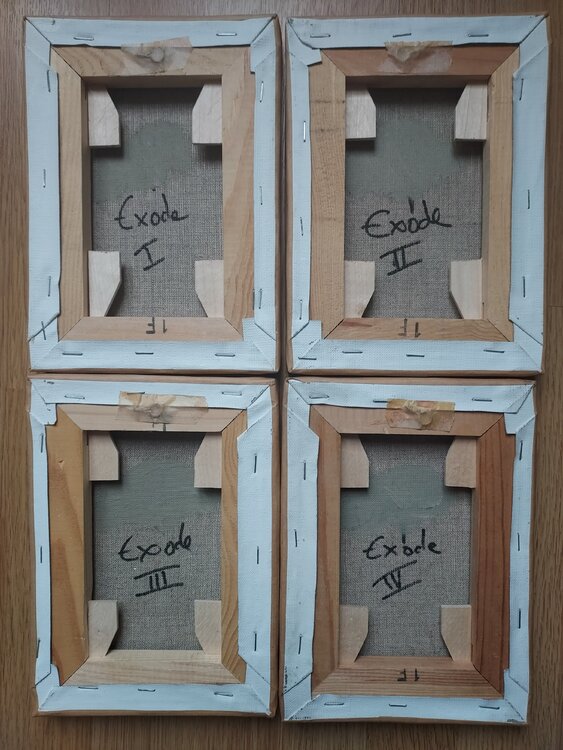 Pintura al óleo sobre bastidor. La obra se compone de una serie de cuatro cuadros, formato 1F, para disponer como se desee en formato horizontal o rectangular (ver fotos).