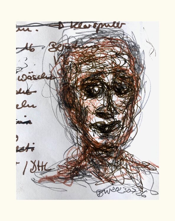 MAHNERIN, obra uno de la serie diaria “NINGÚN DÍA SIN LÍNEA”, catálogo de Hatje Cantz, cita de Paul Klee según Plinio “Nulla dies sine linea”