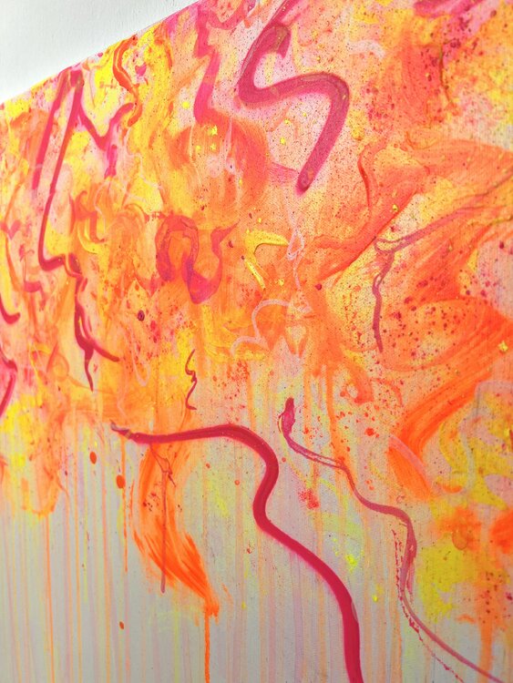 - Colores: naranja neón fluorescente, amarillo neón fluorescente, naranja neón fluorescente y blanco