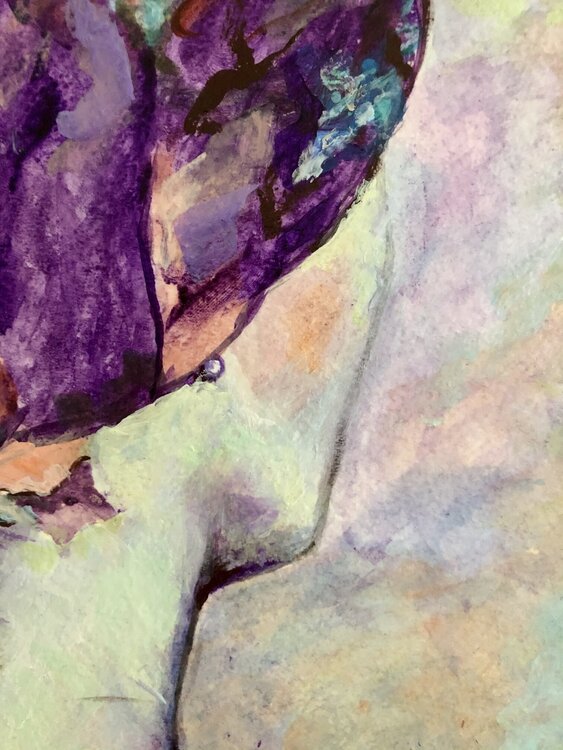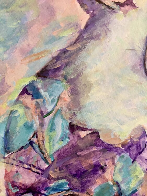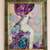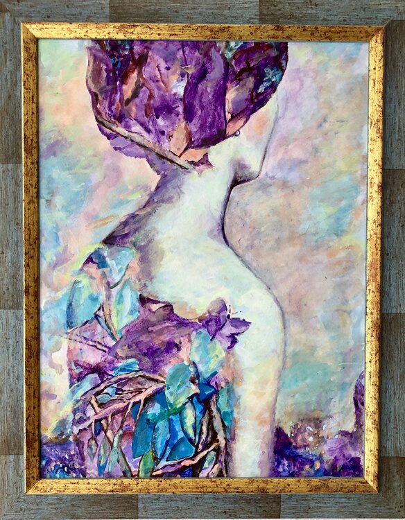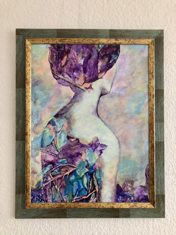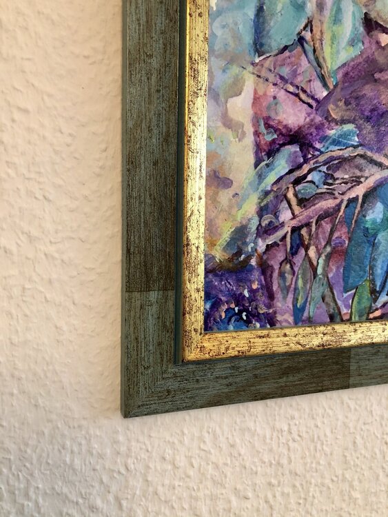 El cuadro "Flora" está enmarcado con un marco de madera azul dorado de un tamaño total de 50x40 cm.