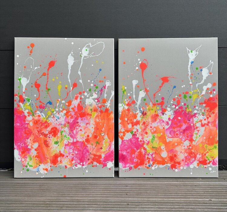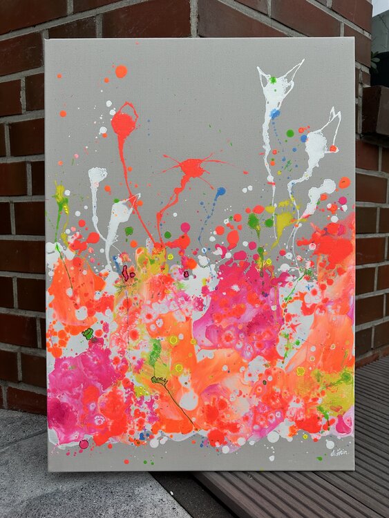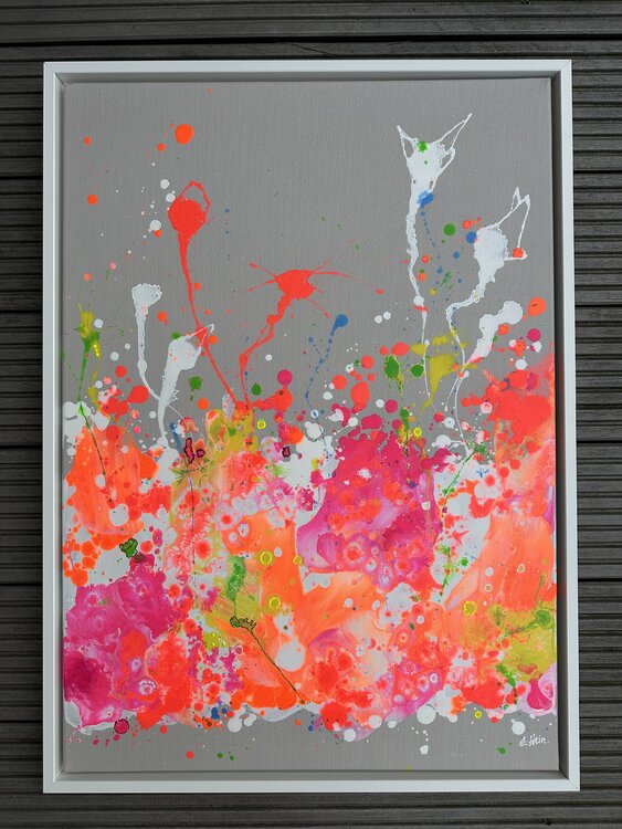 Se vende una pintura acrílica sobre lienzo única con un hermoso motivo abstracto.