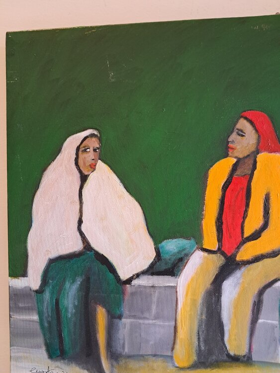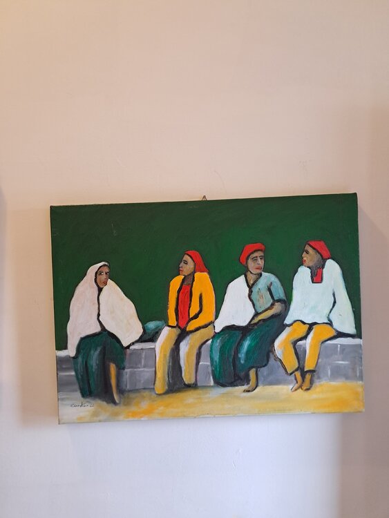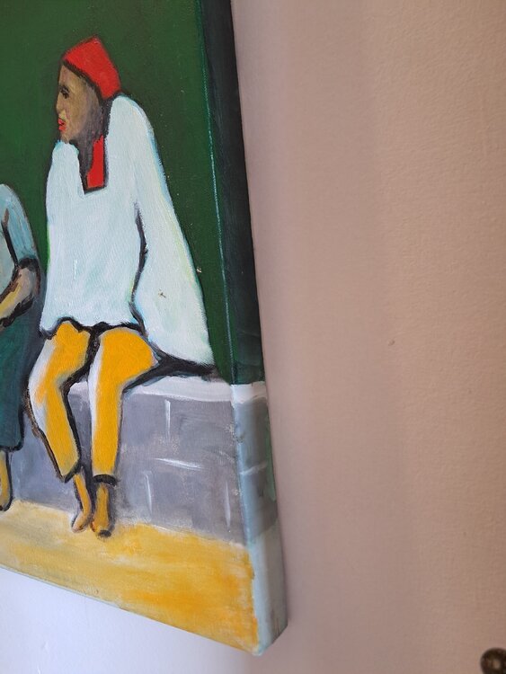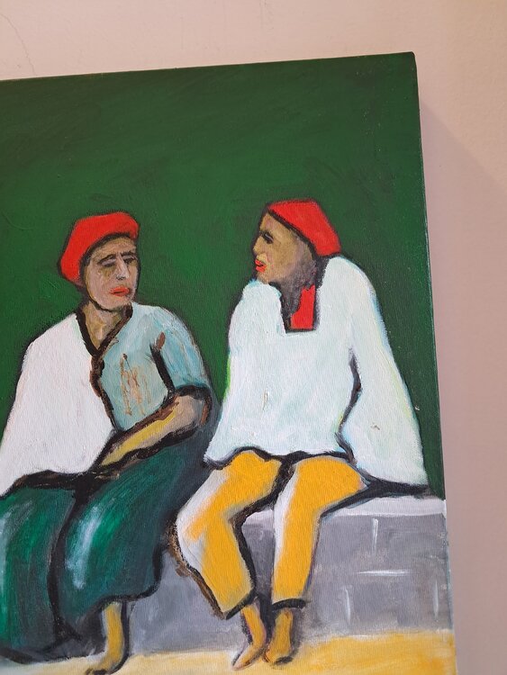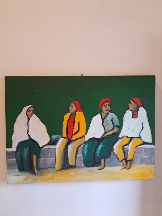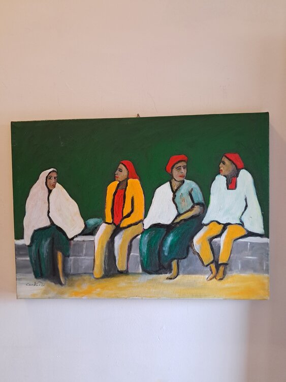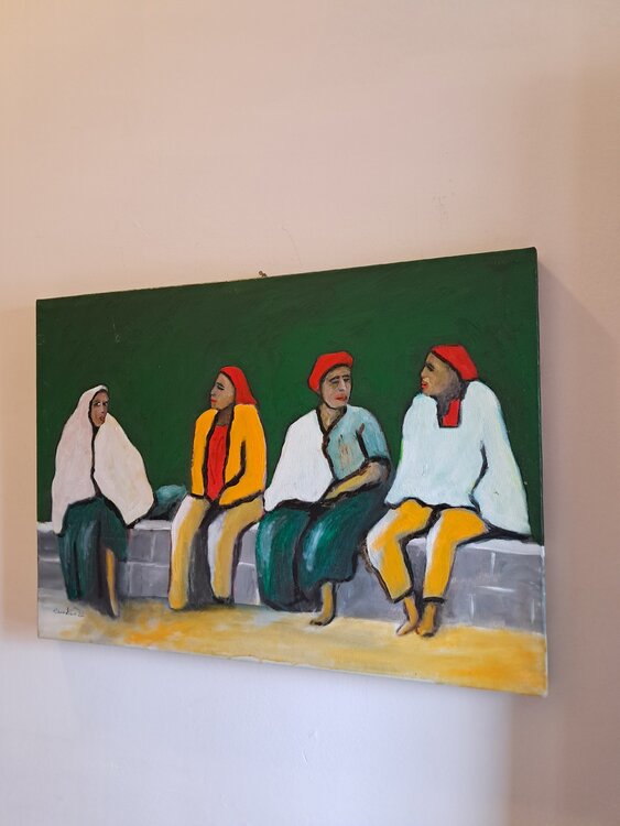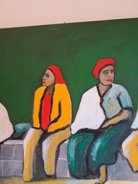 Al pintar esta escena, quería transmitir la conexión humana a través de contrastes de colores vibrantes, usando óleo para realzar la emoción. Realismo y expresionismo se unen para contar una historia silenciosa pero poderosa, donde cada figura, a pesar de su individualidad, comparte un momento colectivo. Mi esperanza es que aporte una carga emocional y conversacional a los hogares, invitando a la reflexión sobre nuestras interacciones diarias.