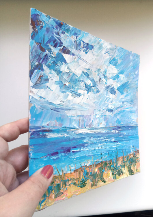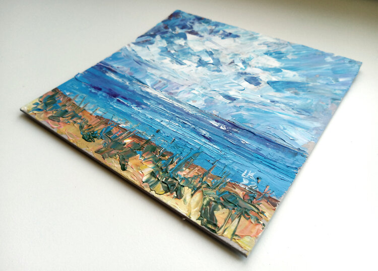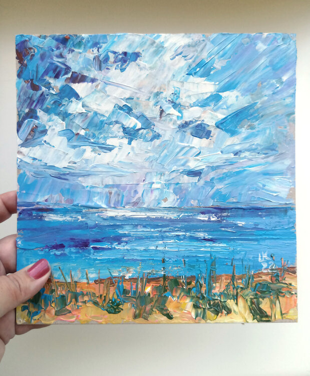 Esta pintura se inspiró en la costa báltica de Estonia. Paisaje marino, playa, mar, océano, agua, lago, naturaleza, paisaje, norte de Europa, mar Báltico, pintura original única.