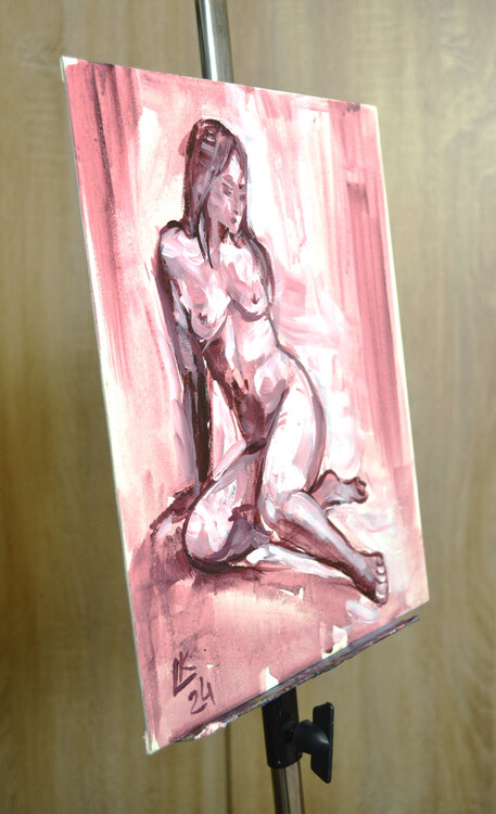 Esta pintura de Lada Kholosho captura la belleza y la gracia de la forma femenina. El artista utiliza una variedad de estilos, incluido el tonalismo, el arte contemporáneo, el retrato, el expresionismo, el arte figurativo, el realismo, el impresionismo y el postimpresionismo, para crear una obra de arte única e impresionante. La pintura está hecha a mano con acrílico sobre lienzo y cartón, y mide 12 pulgadas de alto y 10 pulgadas de ancho. El tema1