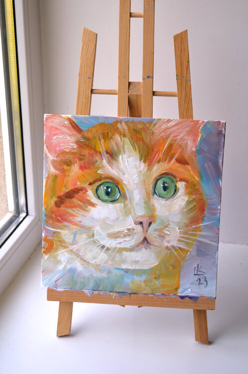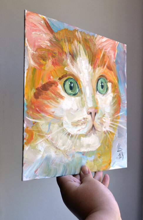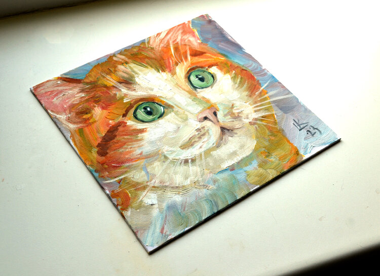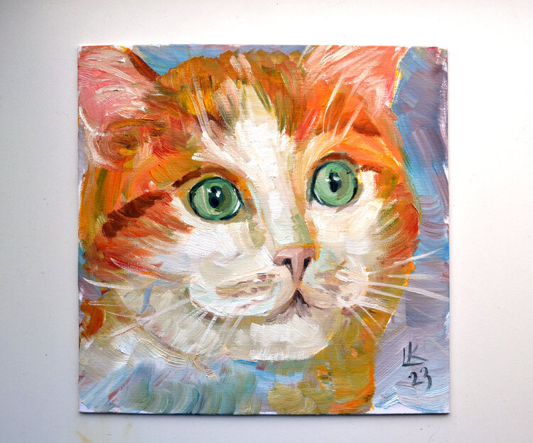 Esta pintura al óleo original es el complemento perfecto para la decoración de su hogar. Con su tamaño compacto (10x10 pulgadas/25x25 cm), esta pintura al óleo es una solución ideal para aquellos que buscan un arte de pared asequible sin comprometer la calidad. Esta obra de arte fue pintada a mano con pinturas al óleo de calidad de artista en un panel de lienzo por el artista Lada Kholosho. Los colores vibrantes y los trazos expresivos de textura1