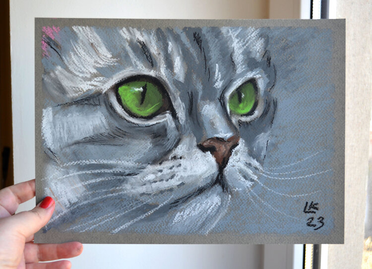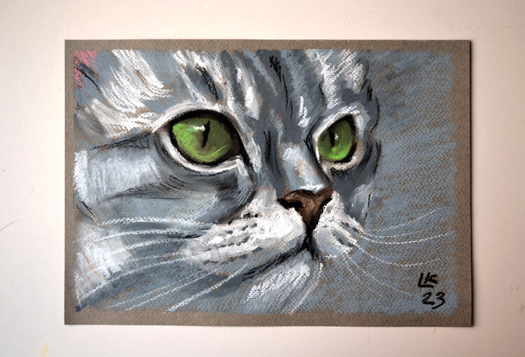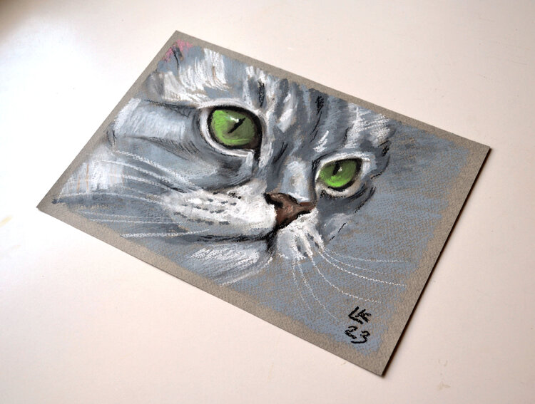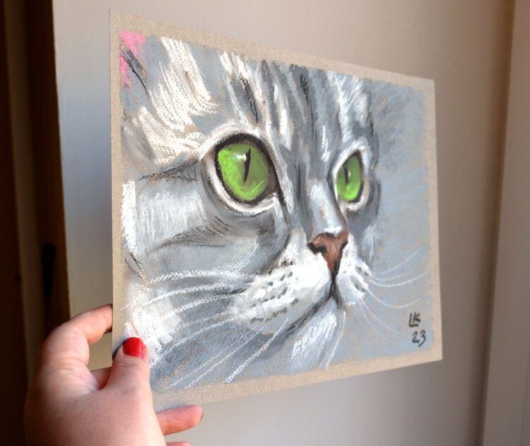¡Esto es arte 100% original, no es una impresión o una copia! Pintura de pastel al óleo de tamaño pequeño de 12x8"/30x21 cm sobre papel. Una pintura de colores brillantes, ideal para espacios pequeños. Sin marco, es ideal para colocarla en un estante o puede colocarla en un marco de fotos adornado para lograr aún más impacto. La pintura podría cortarse fácilmente para adaptarse al marco estándar. El arte se vende sin marco. Pintado y firmado por1