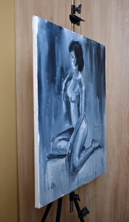 Esta pintura única representa a una hermosa mujer desnuda sentada en una pose clásica, creada por el artista Lada Kholosho. La obra de arte es una sola pieza, hecha a mano con acrílico sobre lienzo, que mide 24 pulgadas de alto y 20 pulgadas de ancho. Está firmado por el artista y retrata temas de arte y personas, centrándose en mujeres, desnudos, figuras y damas. El estilo de la pintura se inspira en el tonalismo, el arte contemporáneo, el retrato,1
