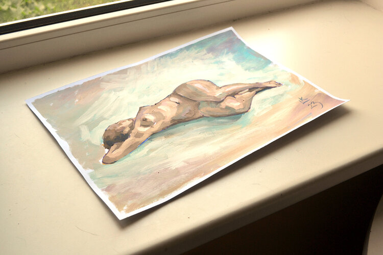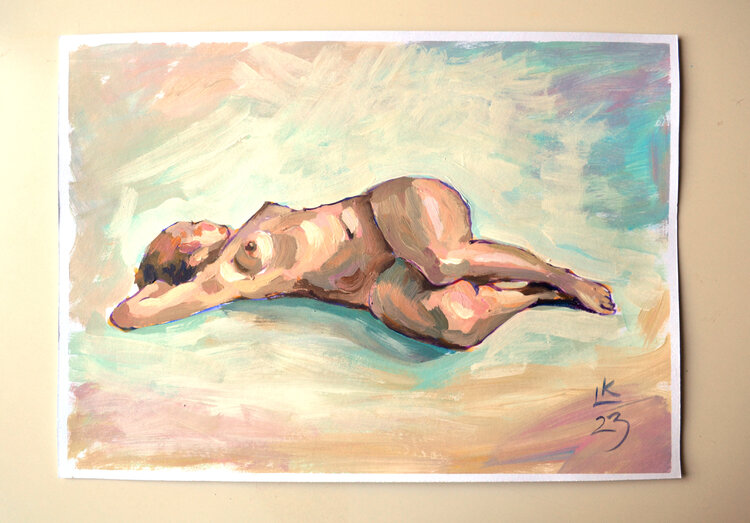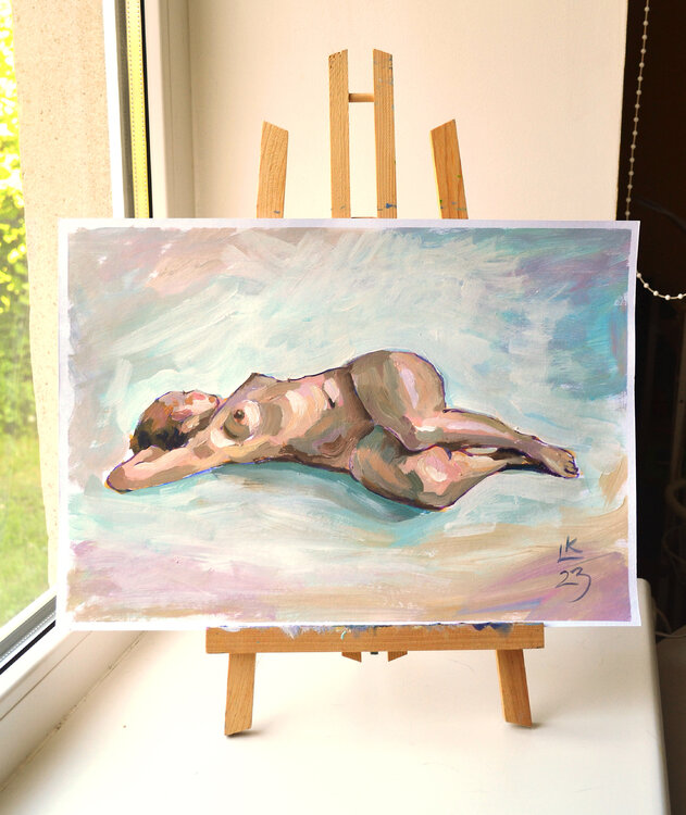 Esta pintura original es el complemento perfecto para la decoración de su hogar. Esta pintura acrílica (11,7 x 16,5 pulgadas/30x42 cm) es una solución ideal para aquellos que buscan un arte de pared asequible sin comprometer la calidad. Esta obra de arte fue pintada a mano con pinturas acrílicas de calidad de artista en un papel por el artista Lada Kholosho. Los colores vibrantes y los trazos expresivos de textura gruesa de esta pintura acrílica1