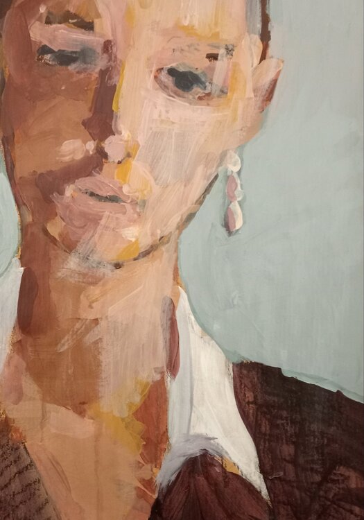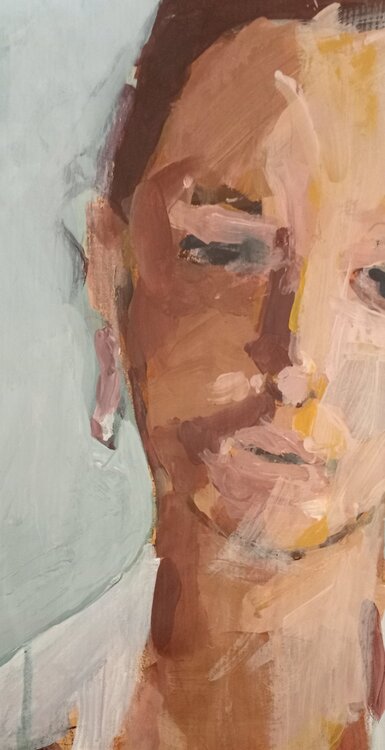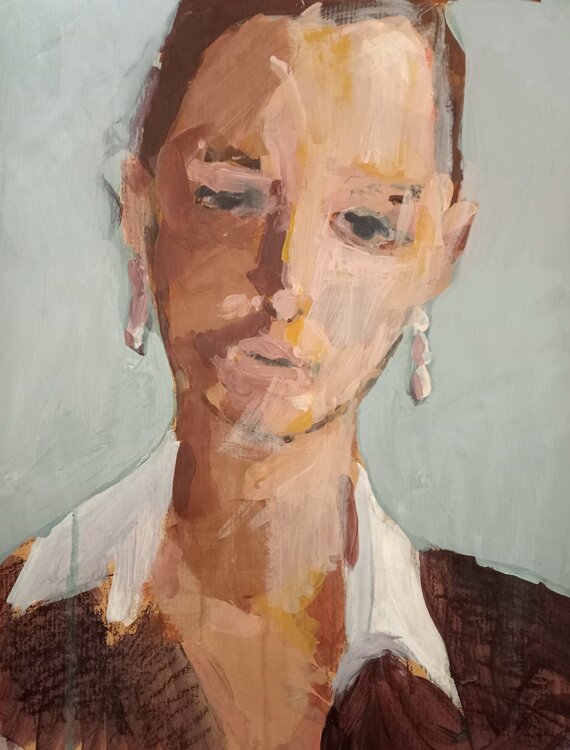 Ausencia, en su mirada y en la del espectador. Sólo una luz artificial es la señal de que ella, sola en una habitación, no se siente invisible. Hay muchas razones para sentirse así, pero más que nunca una vida que ya se está convirtiendo en un recuerdo en el presente. Ella está ahí, entre la luz y la sombra, entre lo que se ve y lo que no. Ella está de pie, como quien espera.