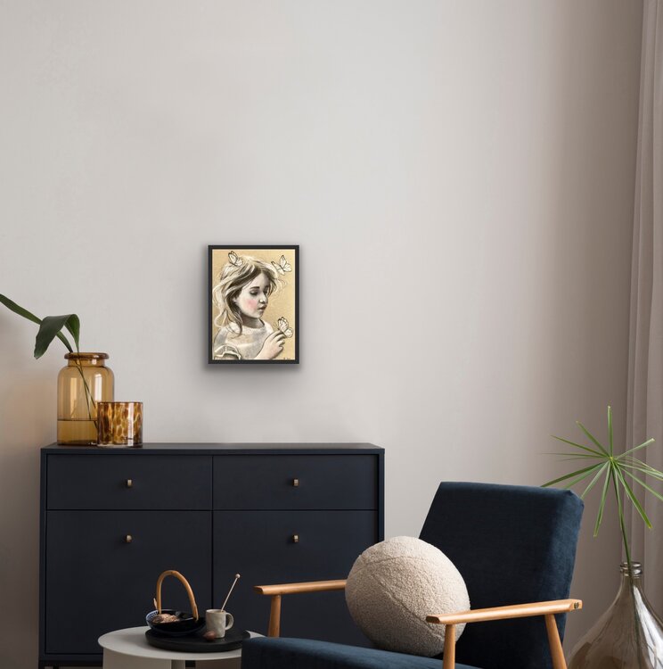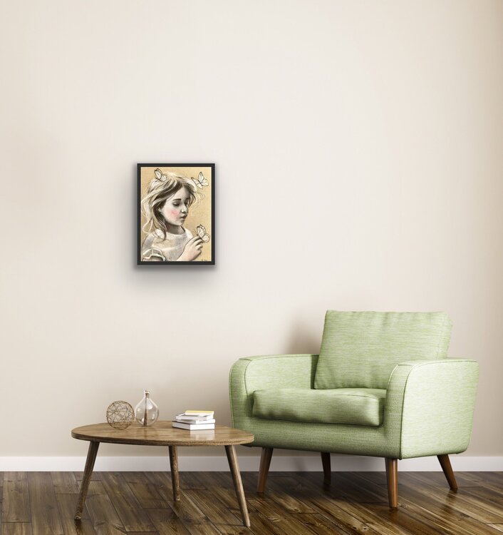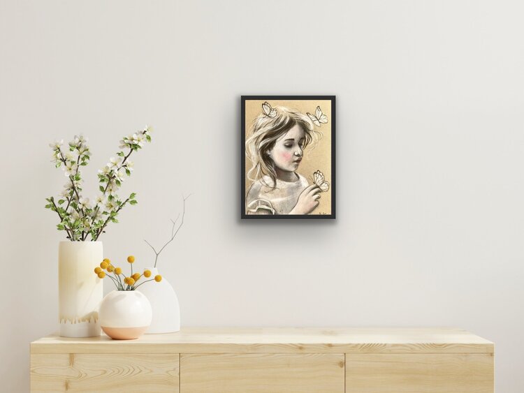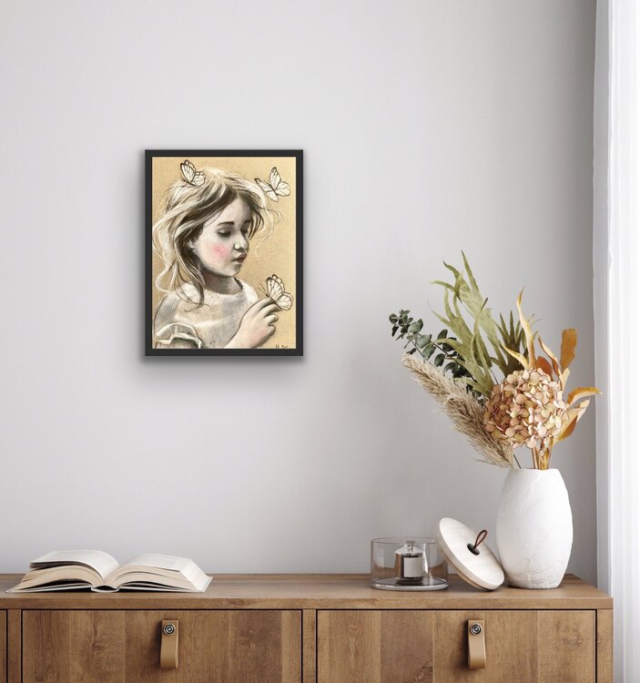 El artista creó esta obra "inocencia" con técnica de pastel seco, capturando una intensa emotividad expresionista. La figura de una niña rodeada de mariposas, un conjunto de belleza intrínseca que nos acerca a la naturaleza y toca nuestras emociones más profundas. Este arte aporta energía y un profundo sentido de conexión con cualquier entorno. La obra original se venderá sin marco y se enviará cuidadosamente protegida con papel cristal y empaquetada1