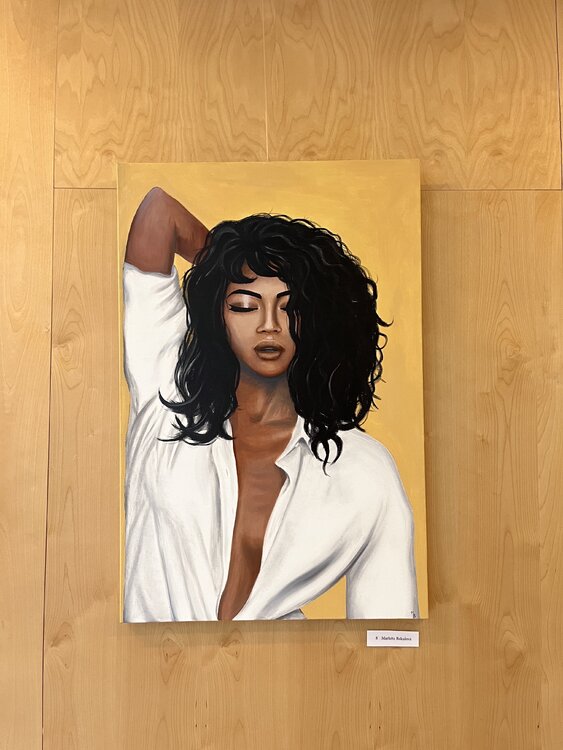 Quería expresar cómo la mujer puede ser provocativa y tímida al mismo tiempo... así que esta pintura captura a una mujer exótica con un rostro tímido y una camisa abierta...