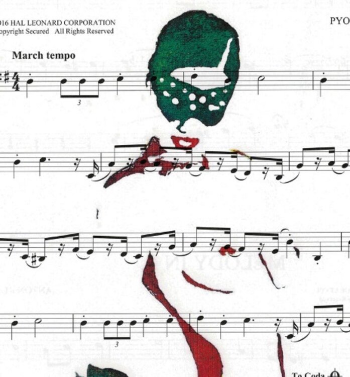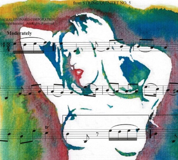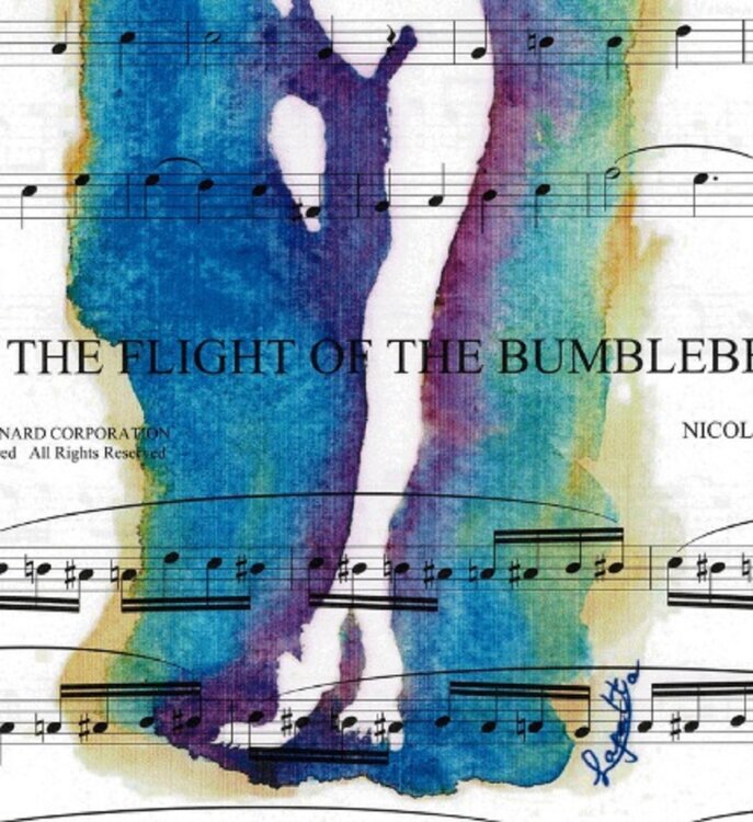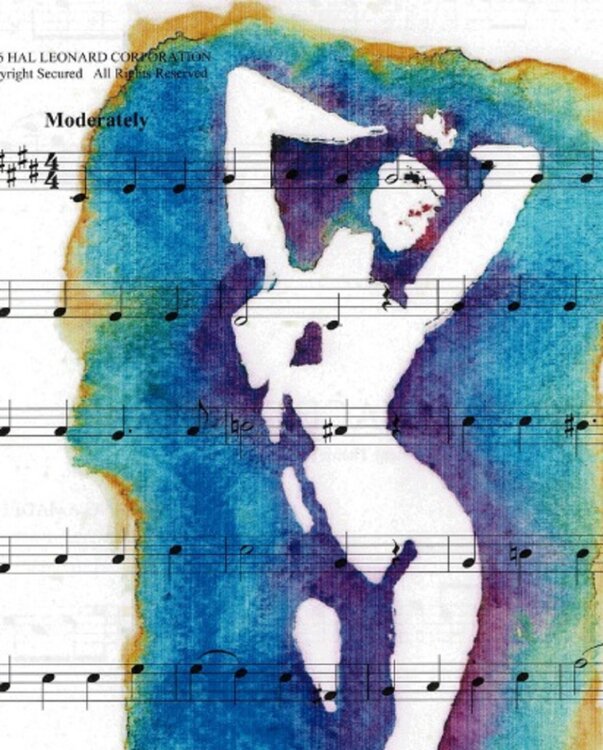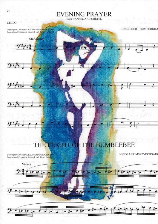 Conjunto de 3 impresiones artísticas de mis cuadros en edición ilimitada en partituras musicales (101 temas clásicos) firmadas a mano con lápiz en el anverso inferior.