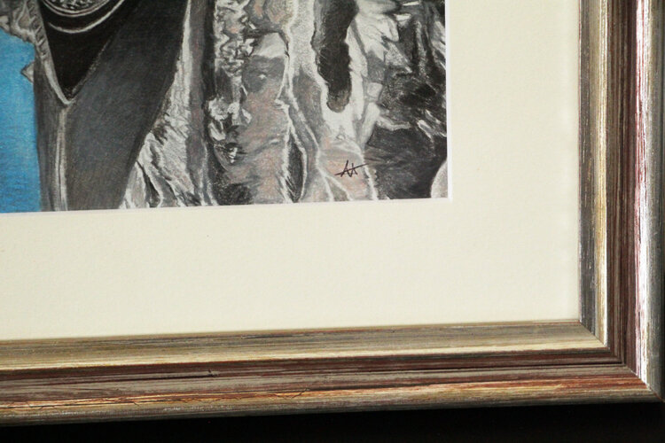 L'oeuvre est entièrement réalisée à la main aux crayons, plume et encre de chine sur papier et sera vendue avec1