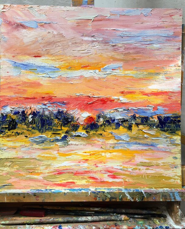peinture à l'huile professionnelle, avec la technique des pinceaux et couteaux spatule
