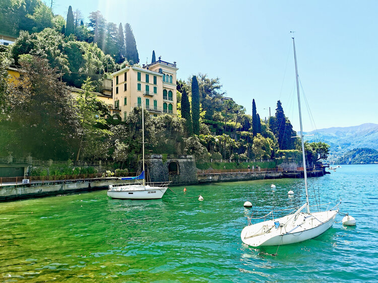 Vue de la Villa Lucia à Varenna sur le lac de Côme. La photo a été prise en mai 2021 et capture la merveilleuse attitude italienne envers la vie, que l'on obtient automatiquement en la regardant comme ça.