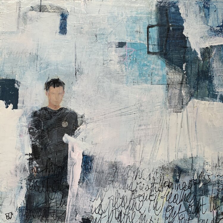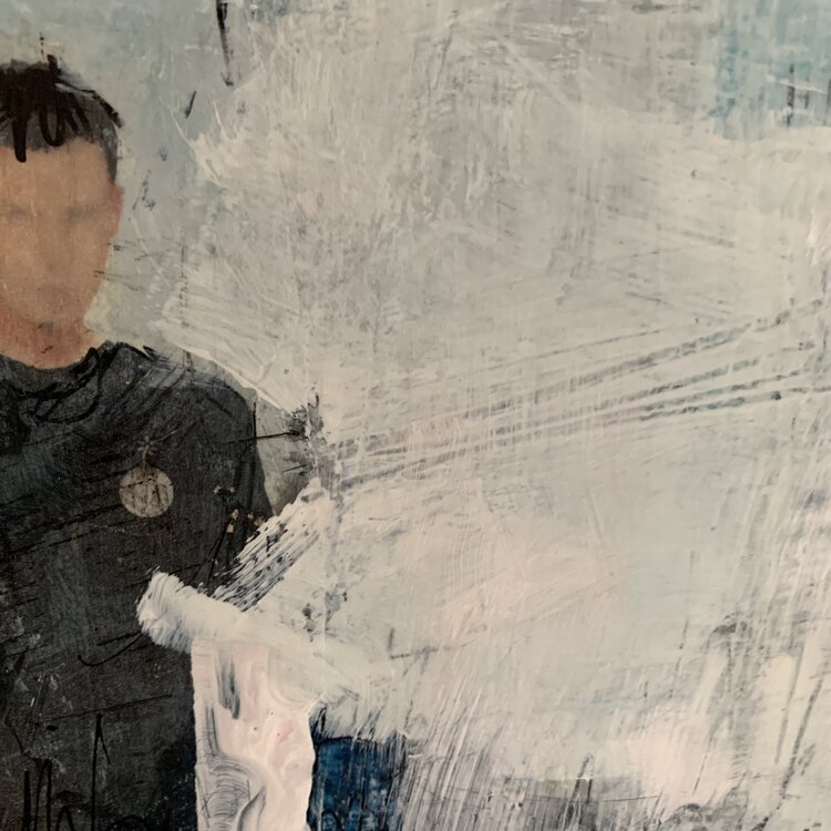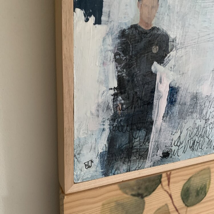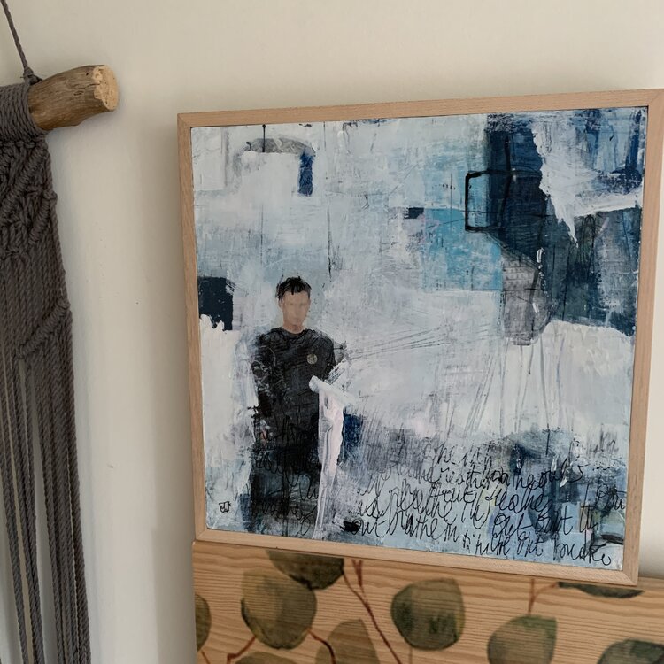 Oeuvre mixed media sur panneau bois, encadrée bois naturel (peuplier), dimensions encadrée 32 x 32 x 2,5 cm, avec système d'accroche et certificat d'authenticité au dos.