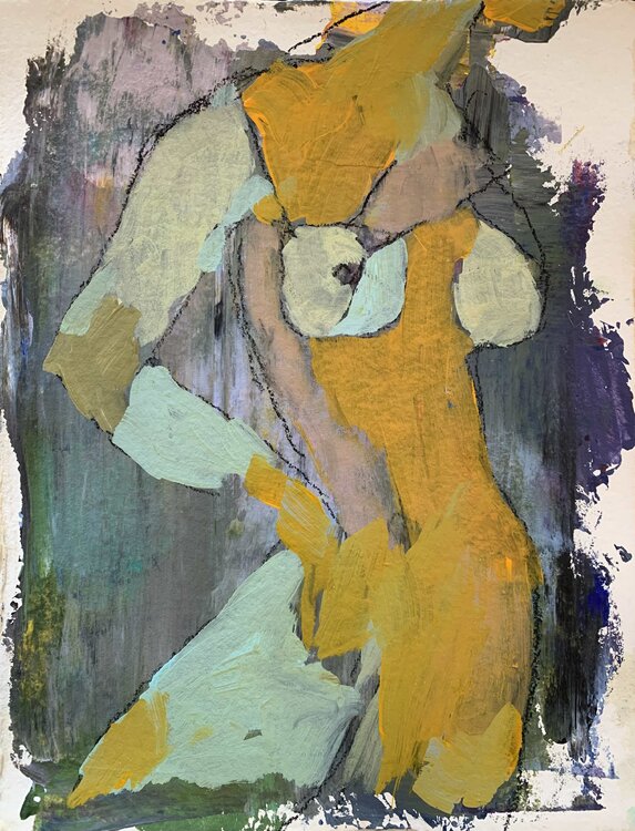 Nu féminin peint sur papier aquarelle torchon ivoire.