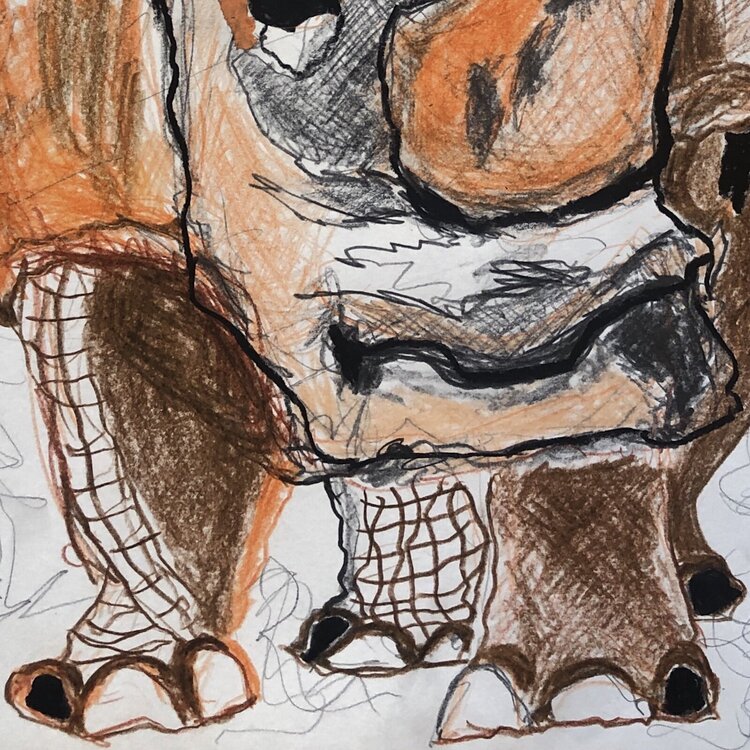 RHINO Parce qu'aujourd'hui c'est dimanche, le rhinocéros se promène joyeusement dans la savane. Est en route pour le goûter. Habillé aux couleurs de la fin de l’été, comme diraient les Européens. Aux couleurs du lever du soleil, le rhinocéros se retrouve. Il aime se retrouver entre amis et parler de choses et d'autres, des tendances couleurs du moment et de toutes les bonnes choses qui font du bien aux animaux !