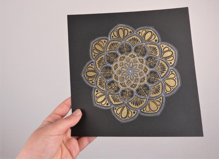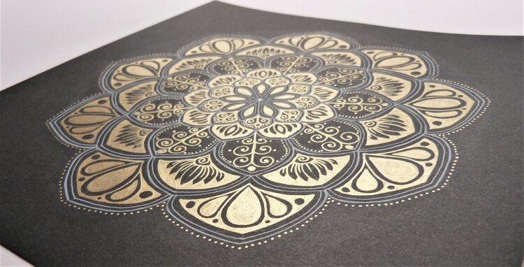 La fleur en or a été appliquée sur du carton avec un stylo gel et a un effet positif sur le bien-être et la confiance en soi. En même temps, la couleur a une aura mystique.