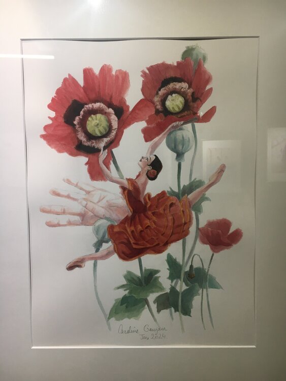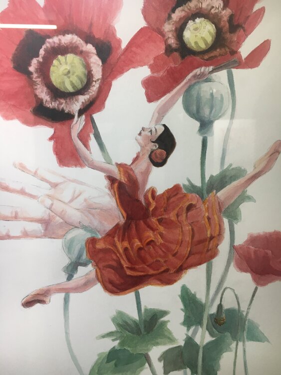 Cette oeuvre mêle la grâce et la légèreté des danseurs et celle des fleurs. Les pavots rouges font écho au costume de la danseuse, Kitri de Don Quichote, et à son énergie sur scène.